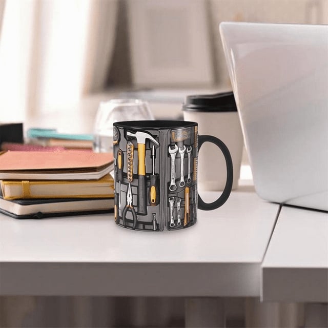 • Hyper-Real Tool Case Design: The mug’s surface mimics a fully stocked tool kit—complete with a hammer, screwdrivers, pliers, tape measure, and tiny hardware details. It looks like a mini toolbox you can actually drink from, serving up big “handyman energy” in every sip.